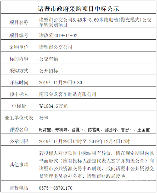 - 南京东山公交客运有限公司80辆纯电动公交车采购项目中标结果公告