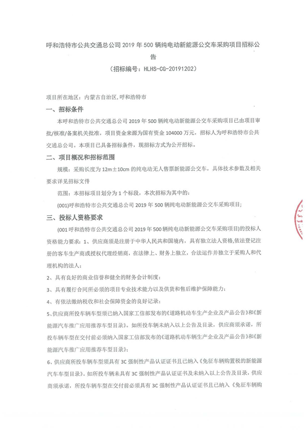 - 新能源公交车动力电池组更换采购项目(二次)-采购公告