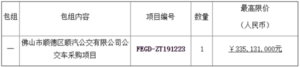 广东省佛山市顺德区顺汽公交有限公司公交车采购项目企业采购公告