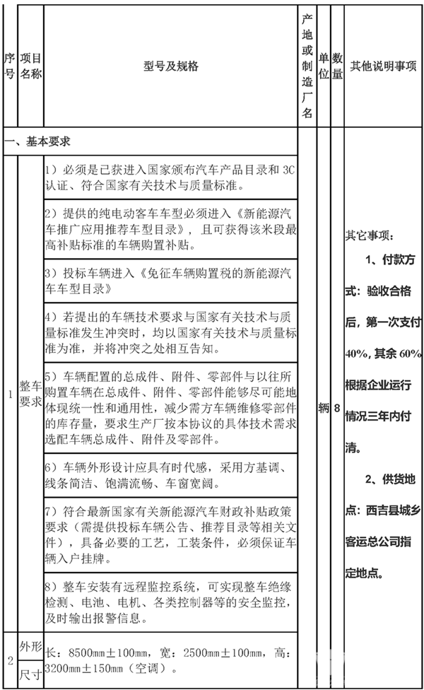 宁夏固原市西吉县纯电动城市公交车采购项目公开方式招标公告