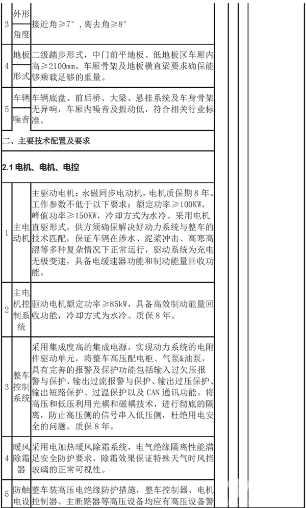 1.2标段划分:共划分2个标段; Ⅰ标段为10.5米纯电动公交车,Ⅱ标段为8.5米纯电动公交车。