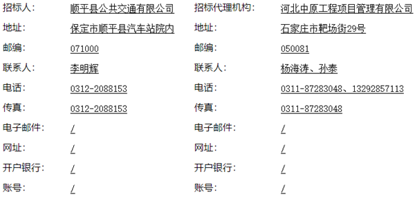 2.1项目概况:项目名称:顺平县公共交通有限公司纯电动公交车采购项目。 招 标 人:顺平县公共交通有限公司