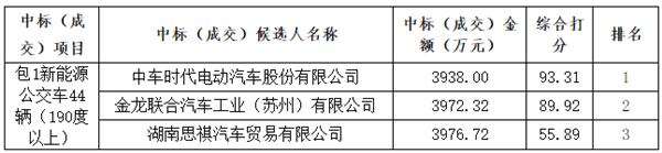 受怀化公共交通集团有限责任公司的委托,本代理机构对新能源公交车项目采购项目进行公开招标采购,现将采购结果公告如下: