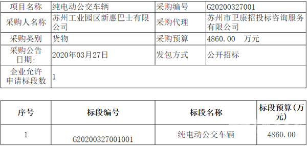 江苏省苏州工业园区新惠巴士有限公司纯电动公交车采购公告