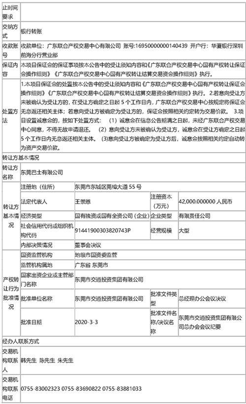 转让方:东莞巴士有限公司