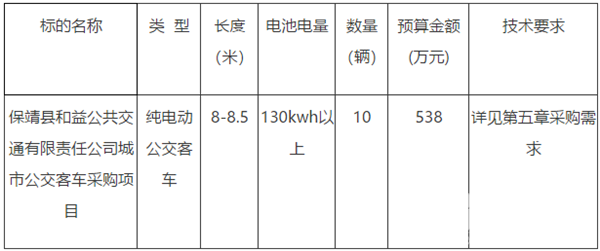 湖南省保靖县和益公交公司城市公交客车采购项目招标公告