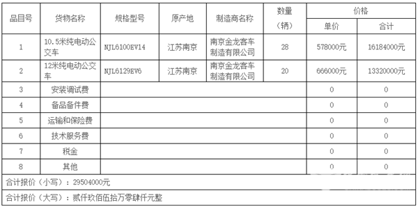 - 兴城市11米 客运版纯电动公交车中标候选人公示