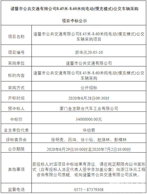 - 兴城市购置新能源公交车项目-8米纯电动公交车中标候选人公示