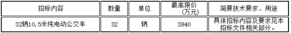 温州交运集团汽车服务有限公司32辆10.5米纯电动公交车采购,招标内容及要求如下: