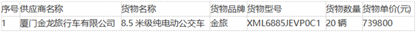 福建省福州康驰新巴士有限责任公司8.5米级纯电动公交车采购中标公告