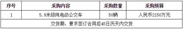 浙江省湖州市交通集团公共交通有限公司纯电动公交车(一标段)采购公告