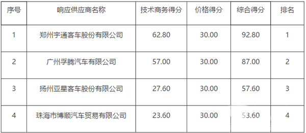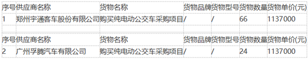 广东省惠州市金通公共汽车运输有限公司纯电动公交车采购项目中标公告