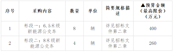 浙江丽水景宁畲族自治县公共交通有限公司新增能源公交车采购招标公告