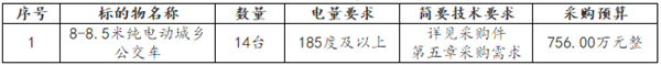 湖南省湘西乾城汽车运输有限公司新能源纯电动城乡公交车采购招标公告