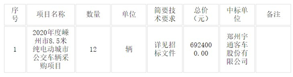 - 2025年14辆纯电动公交车采购项目(一标段)中标结果公示