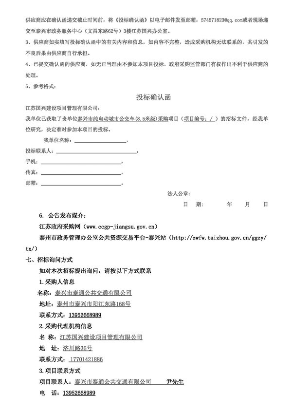 - 兴城市购置新能源公交车项目-8米纯电动公交车中标候选人公示
