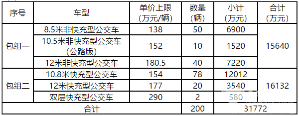 备注:以上投标限价不含国家新能源汽车推广补贴。
