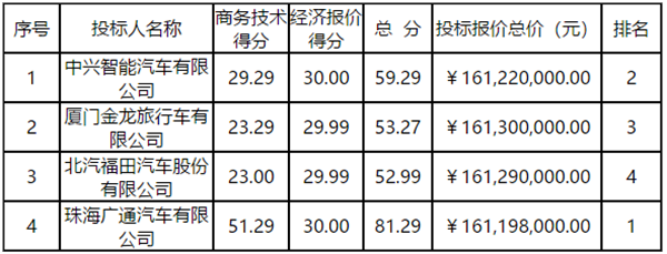 3、第三中标候选人:厦门金龙旅行车有限公司。