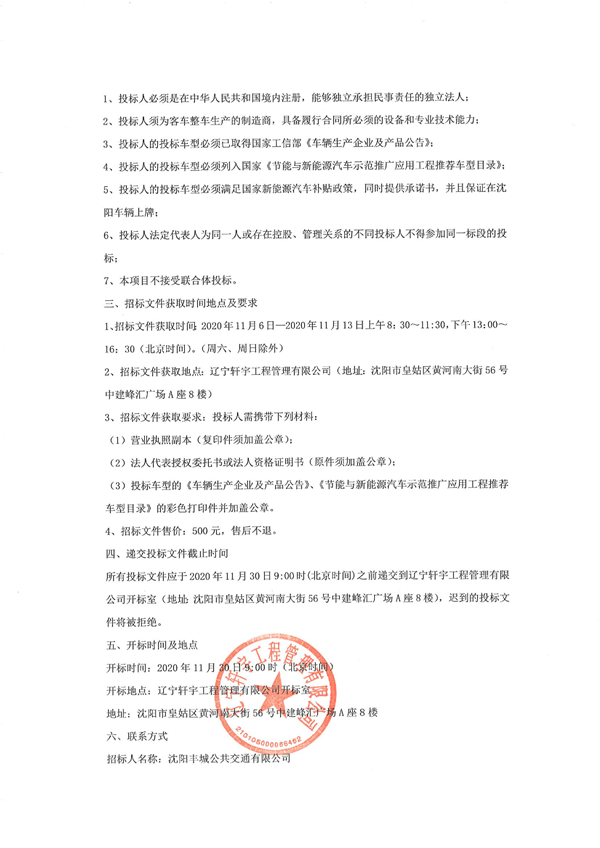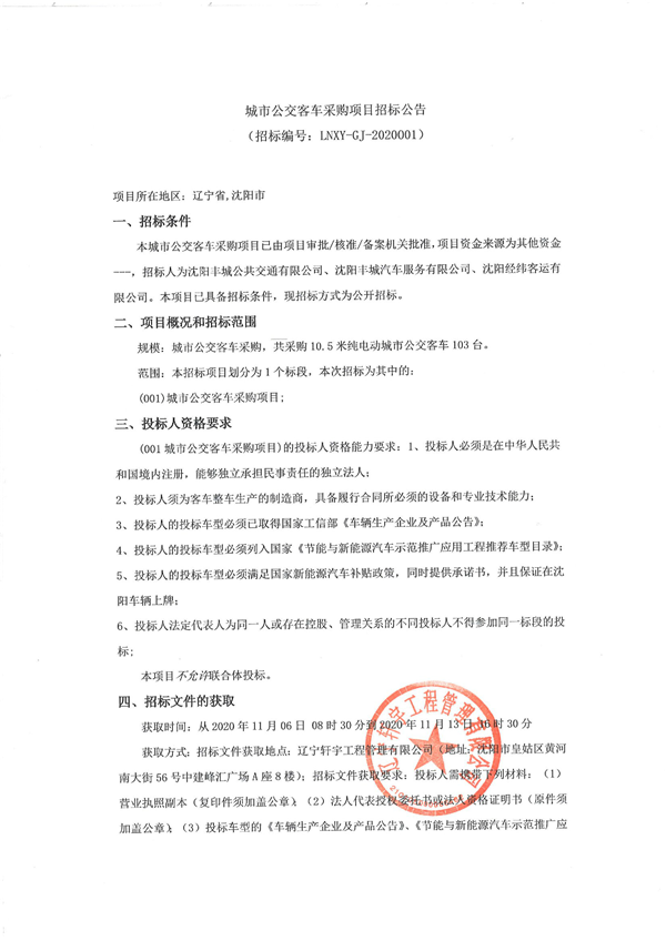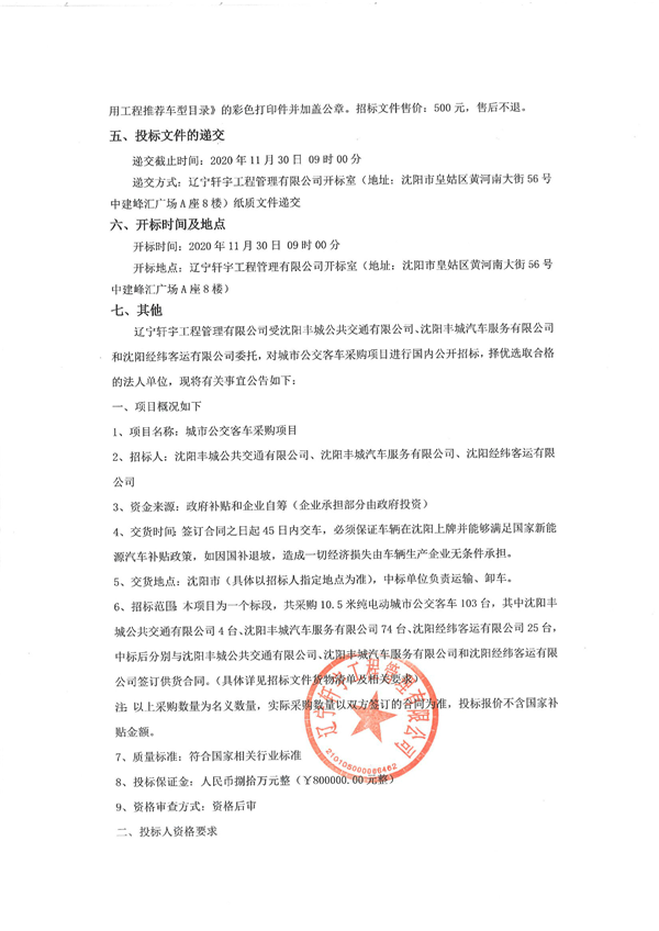- 兴城市11米 客运版纯电动公交车中标候选人公示