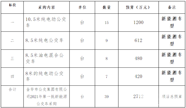 浙江金市公交2021年度第一批新能源公交车采购项目招标公告