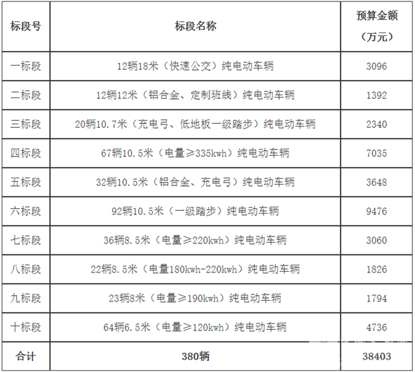 常州公交集团380台新能源公交车采购项目招标公告