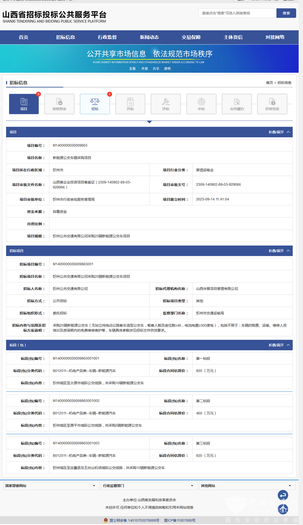 忻州公共交通有限公司采购25辆新能源公交车项目招标公告