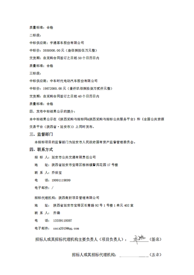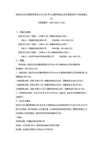 - 榆林市公共交通总公司2025年新能源公交车采购项目中标候选人公示