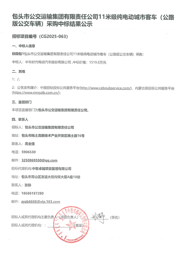 - 石家庄市公共交通集团2025年度6米级纯电动公交车采购项目中标公告