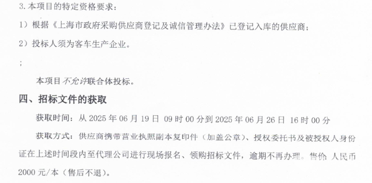 上海金山区9米级纯电动城市客车采购项目公开招标公告