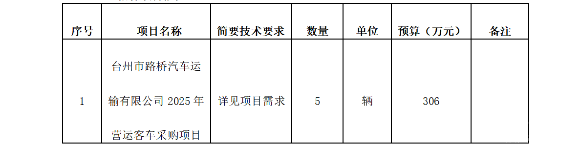 标的名称台州市路桥汽车运输有限公司2025年营运客车采购项目