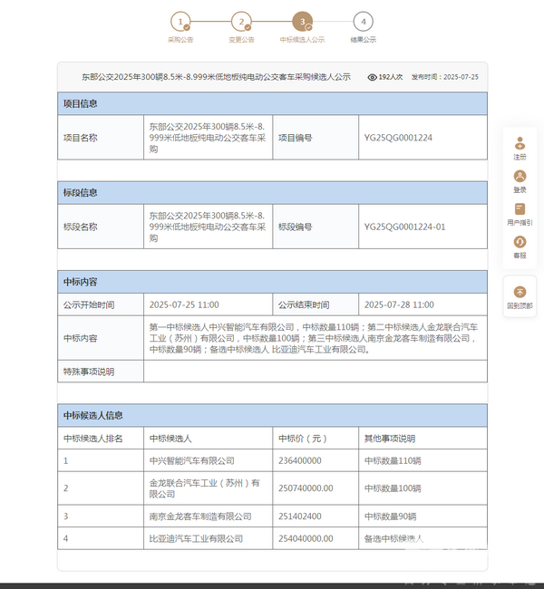 - 2025年营运客车采购标段一、标段二、标段五、标段六中标候选人公示