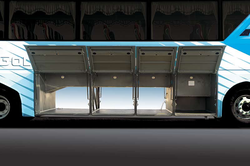 整车结构采用全承载理念,利用计算机三维辅助设计做到了整车强度刚度与整车重量完美平衡。材料上广泛采用镀锌钢板、玻璃钢、铝合金板,大大提高了整车性能。高一级及中级座位数为41+1+1,普通级布置座位数为43+1+1,使该车载客能力达到同级别车中最大,同时拥有超大贯通式行李仓。这些特点使我们的产品拥有同级车中最高的性价比。 该系列底盘是以XML6957为基础平台,经过优化设计而成,可以匹配康明斯、日野、锡柴,玉柴等多款高性能绿色环保发动机。悬架有多片簧和进口六气囊空气悬架可供选择,变速箱和后桥有多种速比可供选择,可满足不同客户不同运行工况的动力性和经济性要求。