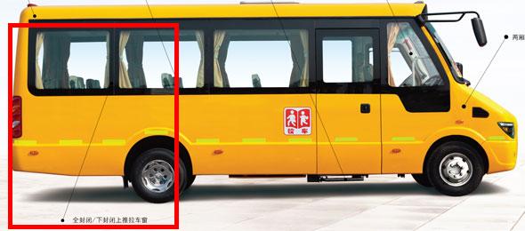下封闭、上推拉式的校车车窗设计(或全封闭车窗),区别于其他车型,避免学童在行车途中随意打开车窗引发意外危险。
