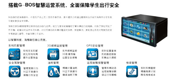 在不久前结束的全国道路客运“海格智慧”科技助力行动总结表彰大会上,它的作用得到了部领导的肯定和各地客运企业的赞誉。海格校车配备了G-BOS智慧运营系统,用高科技来保障孩子的安全。