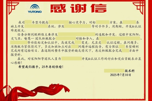 攻克欧洲法规认证!欧科佳获宇通客车感谢信