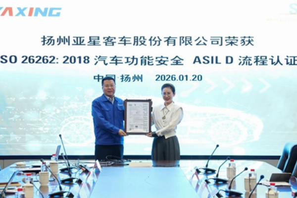亚星客车荣获功能安全体系证书 筑牢智能客车安全新防线