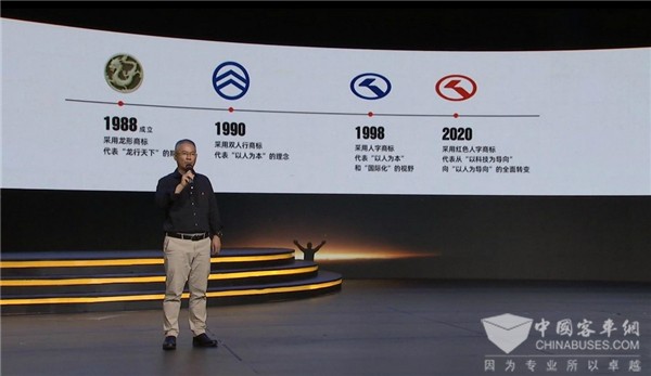 不仅如此,金龙的品牌识别也从科技的蓝色到人性的红色,从1988年,金龙创立之初的龙形商标,到1998年的人字形标志,金龙蓝成为金龙的标志性色彩,并广为人知;2020年,金龙导入了全新的品牌核心色-赛道红,这是金龙不断突破向前的雄心和气魄。面向未来,金龙已做好准备,以全新的面貌、更可信赖的产品和服务,为美好出行而不懈努力。