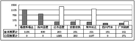 注:其他企业累计产量为重庆力帆(108)、河北长安(94)、成都隆鑫(70)、桂林客车(68)、上海汇众(26)、成都汽车(25)、浙江飞碟(18)、湖南三湘(0)、郑州轻型(2)、镇江汽车(2)、北方华德尼奥普兰(0)、沈飞客车(0)、广州五十铃(1)、广州羊城(1)、辽宁黄海(0)、重庆专用(0)。